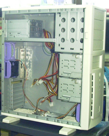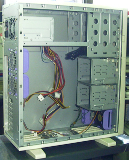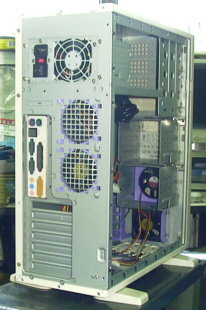 ミドルタワー、5インチベイ×4(レール式)、3.5インチベイ×2(4)、